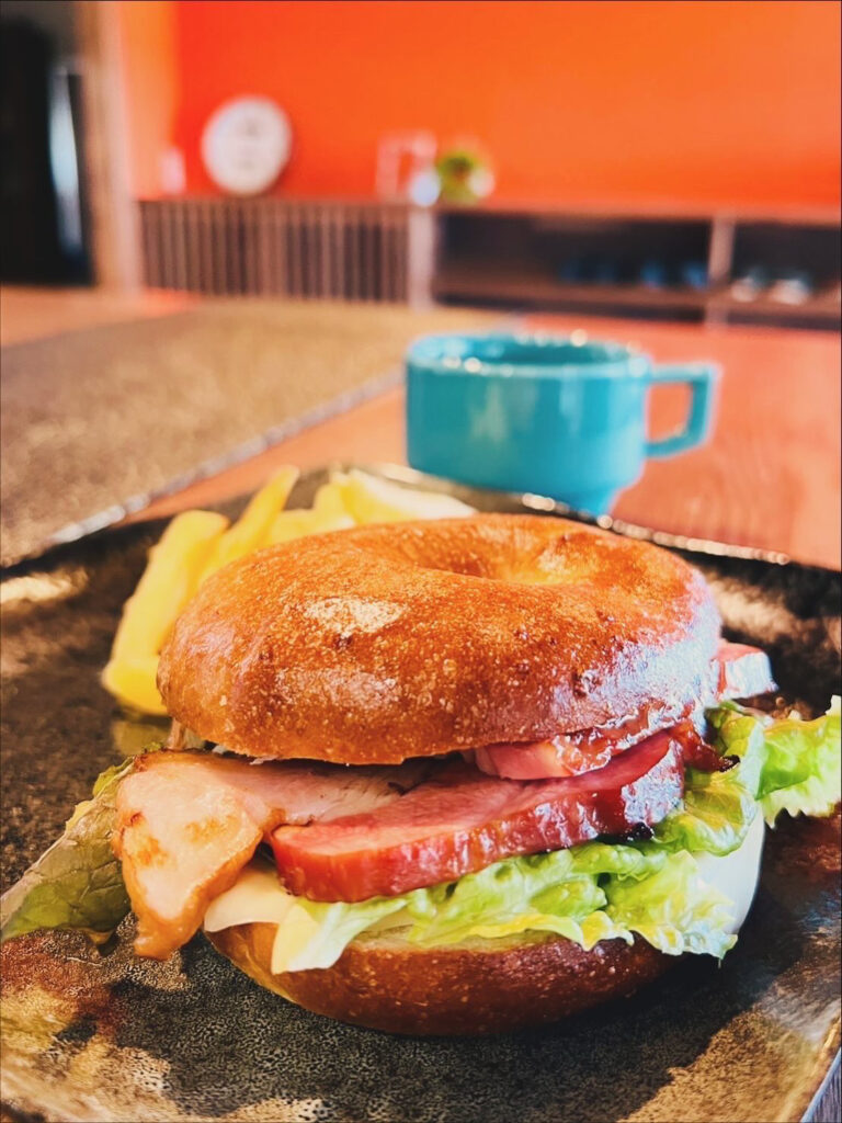 ベーグルサンド等、地元の食材を使ったランチや店内で丁寧に焙煎したコーヒーが味わえるお店です。